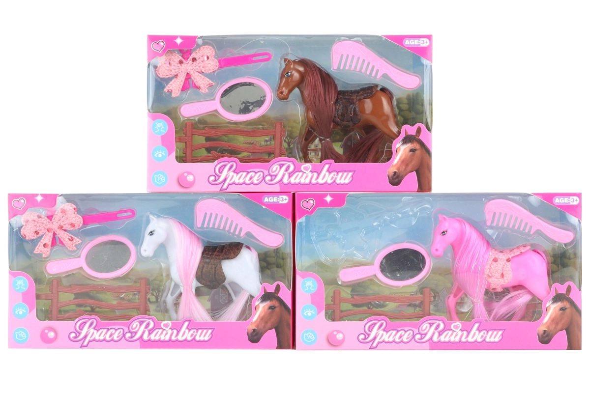 Denne plastfriserhest er et fremragende valg til børn, der elsker styling og at passe dyr. Med en kompakt størrelse på ca. 10 × 8,5 cm ligger den godt i hånden, og takket være det rige sæt tilbehør kan børn nyde timevis af kreativ leg.
