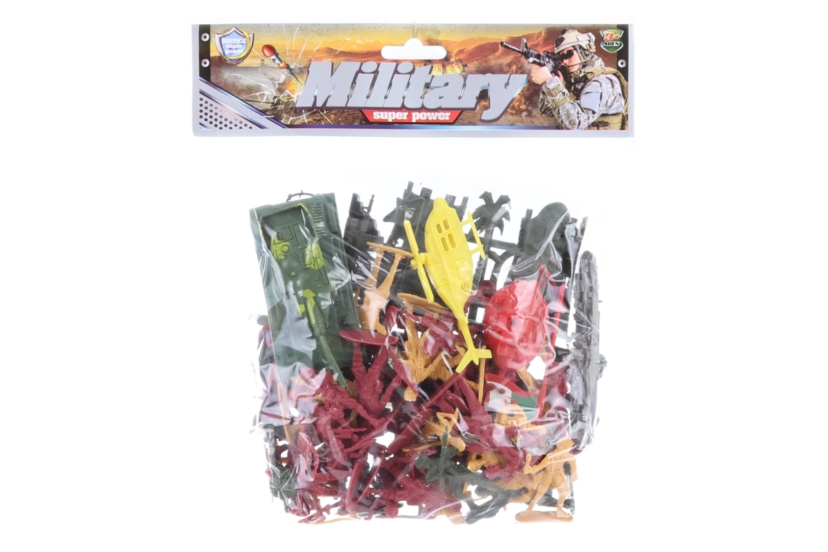 Der medfølger ikke kun figurer, men også en tank, en helikopter og befæstningselementer, så børnene nemt kan skabe deres eget kampmiljø. Emballagen i en praktisk pose er ideel til rejser og nem opbevaring.