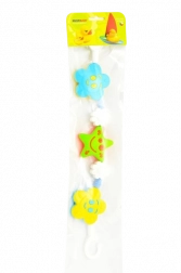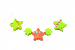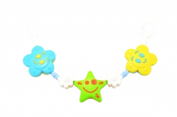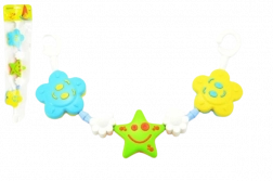 Kroge i begge ender gør det hurtigt at fastgøre til barnevogn, autostol eller tremmeseng. Legetøjet sidder stabilt og generer ikke babyen.