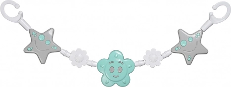 Dette farverige kædelegetøj med sol og stjerner fastgøres nemt til barnevogn, autostol eller tremmeseng. Det understøtter visuel perception, finmotorik og underholder babyen både på farten og derhjemme. Takket være det holdbare plast og den sikre udførelse er det ideelt til daglig brug.