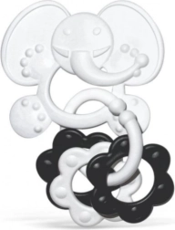 Lindr babyen under tandfrembrud med en bidering formet som dyr, der kombinerer forskellige former og strukturer for en skånsom massage af gummerne. Det kontrastfulde sort/hvide design fanger selv nyfødtes opmærksomhed og understøtter synsudviklingen.