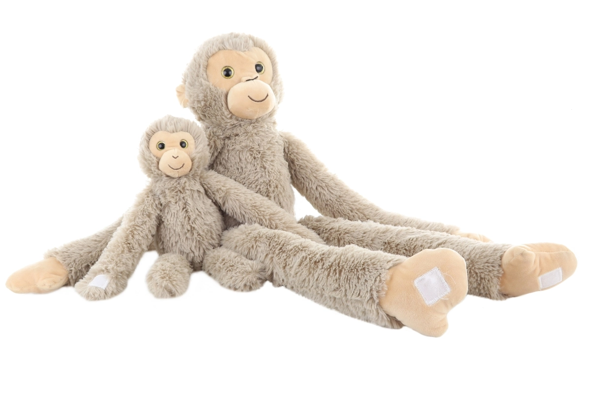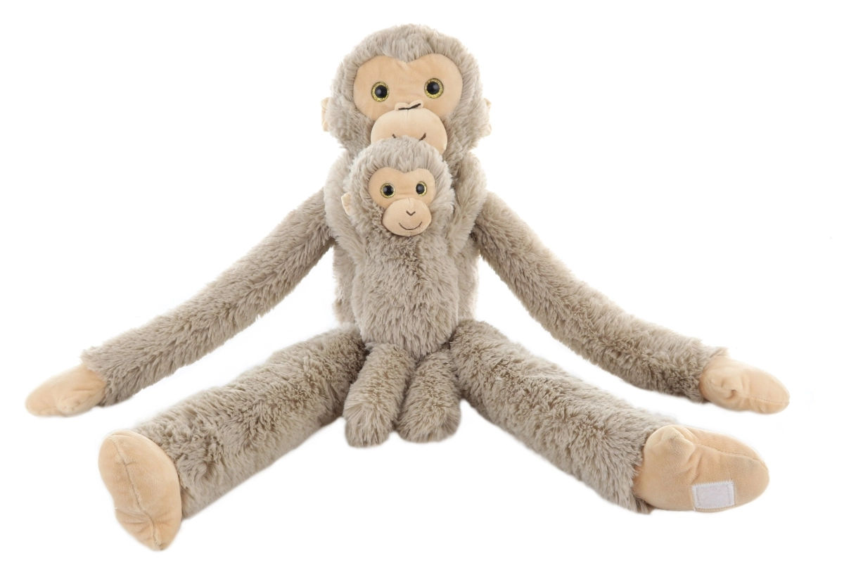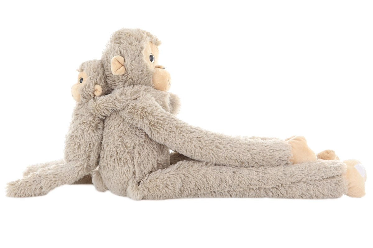 Denne bløde plysbamse-abe med unge vil vinde hjertet hos enhver lille dyreven. Lange, fleksible arme med velcro gør det muligt for aben at kramme barnet eller hænge, mens den aftagelige unge udvikler role-play og finmotorik.