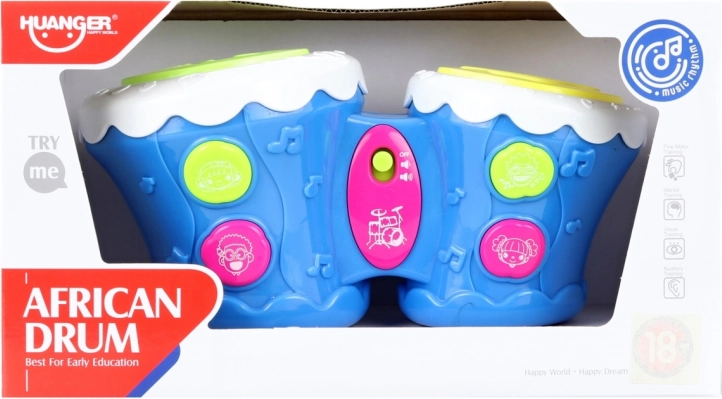De blå elektroniske trommer fra HUANGER inspirerer små musikere til at udforske musikkens verden. To touch-trommer, farvede knapper og blinkende lys ledsager sjove melodier og rytmer, som støtter udviklingen af børns færdigheder.