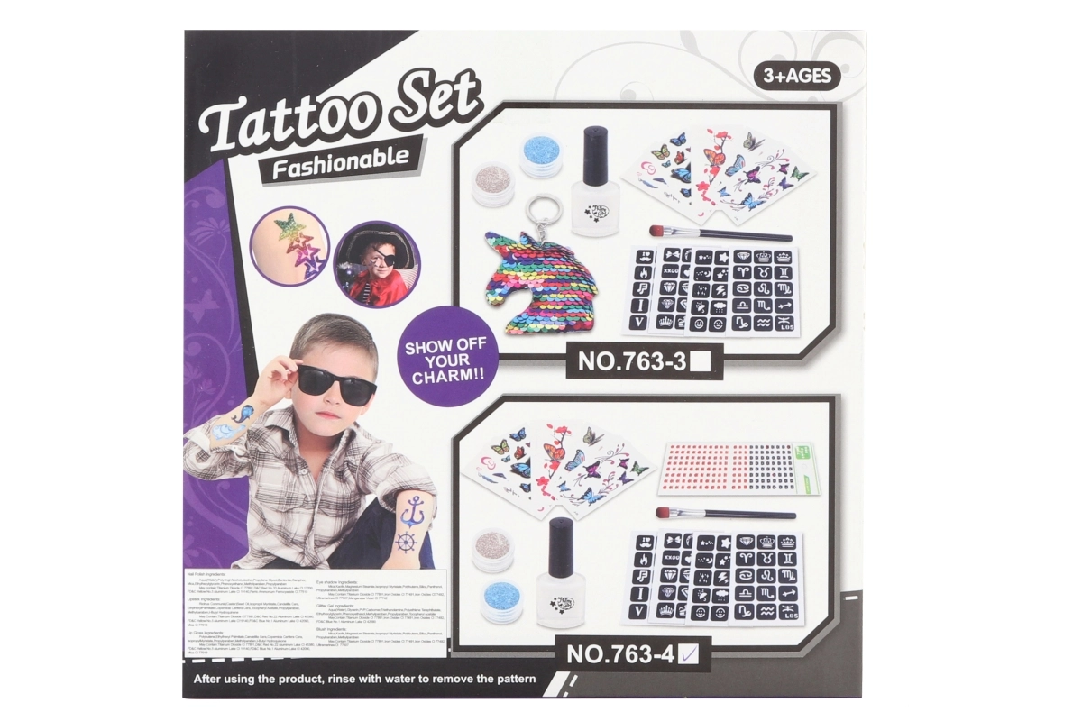 Udvikl kreativitet og finmotorik med et komplet tattoosæt, designet til sikker og nem brug. Med skabeloner og glimmer kan børn lave iøjnefaldende motiver, der skiller sig ud til fester, karneval og i hverdagslegen.