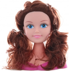 Dette styling-friserhoved med brunt, bølget hår er et godt valg for børn, der elsker at frisere og sminke. Takket være den stabile stander og det kvalitets-syntetiske hår kan man nemt øve børstning, fletning og skabe kreative frisurer.