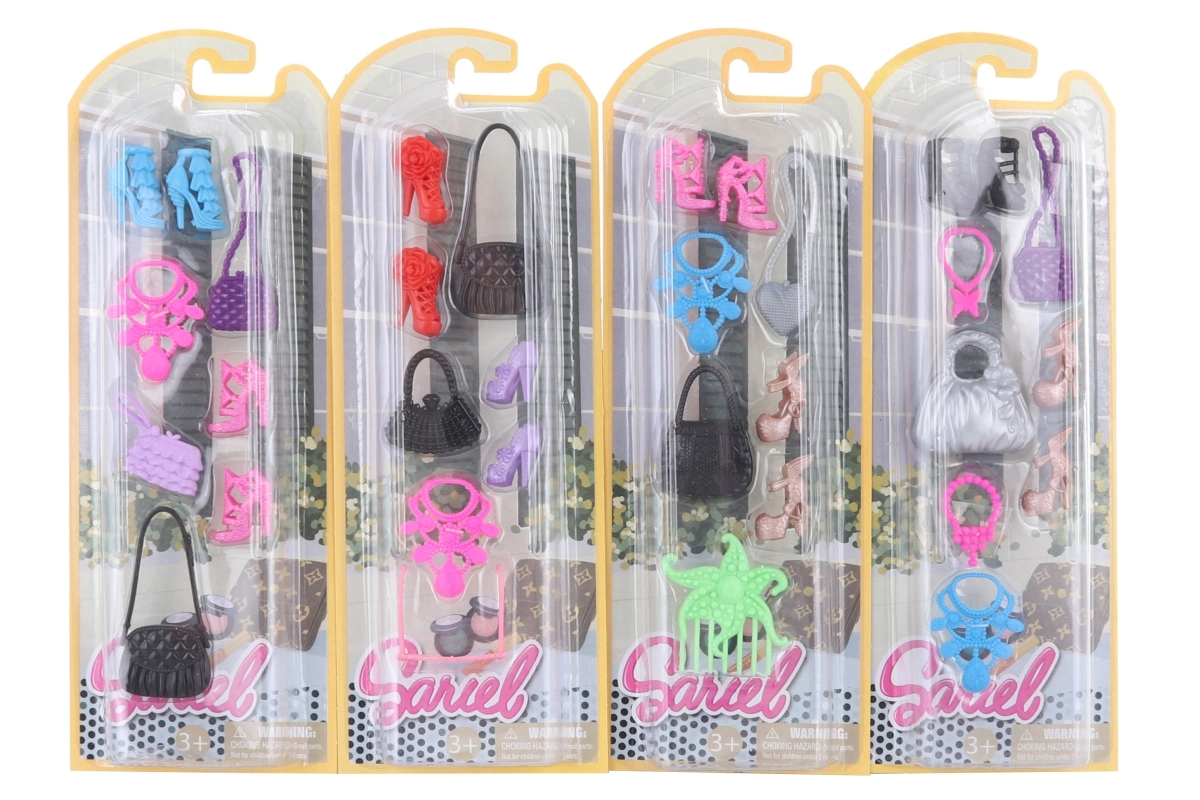 Udvid dine dukkers garderobe med elegante accessoires, der passer perfekt til mange forskellige outfits. Dette alsidige sæt byder på et farverigt udvalg af sko, tasker og smykker, så børn kan nyde mange timers stylish udklædning og rolleleg.