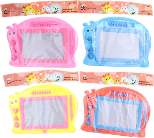 Plast-tegnetavle i form af en snegl med pen. Mål ca. 26 × 19 cm, emballage 30 × 24,5 × 2,5 cm. Ideel til børn fra 3 år.