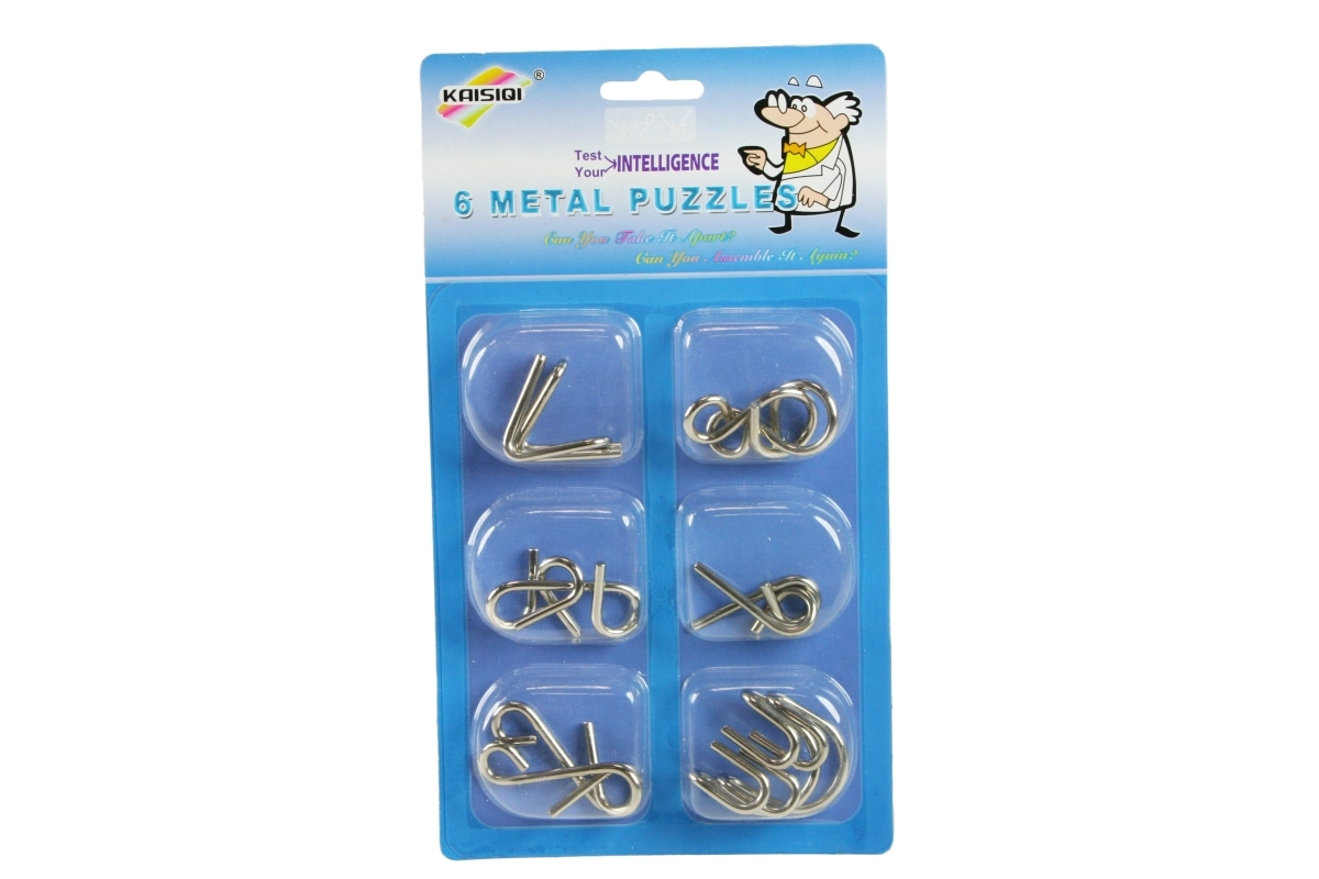 Dette sæt metalgåder tilbyder seks forskellige opgaver i et robust metaldesign. Takket være den kompakte størrelse passer de i både rygsæk og håndtaske, så du altid har klog underholdning lige ved hånden. Et perfekt valg til at udvikle logisk tænkning og finmotorik.