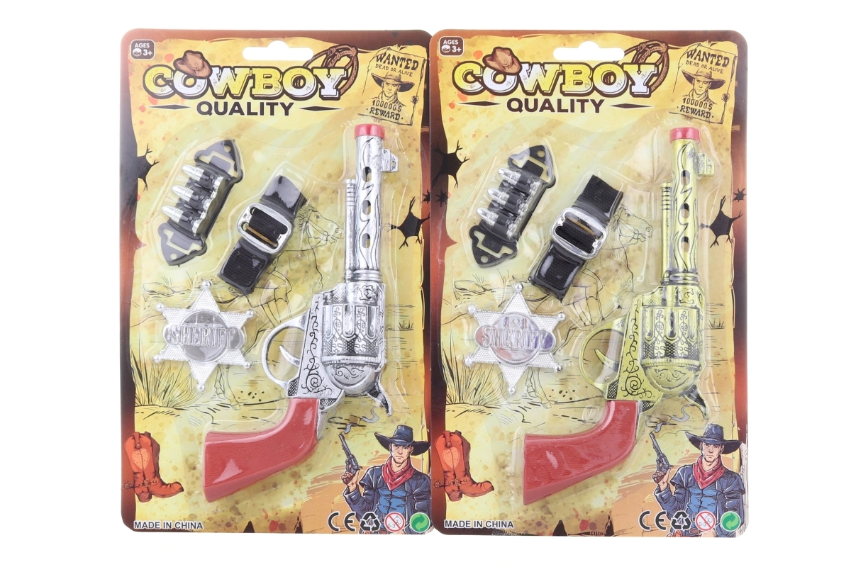 - Komplet udstyr: pistol, sherifbadge, patroner og bælte