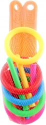 Det plastiske kastkors er et enkelt og underholdende spil, der udvikler finmotorik, øje–hånd-koordination og præcision. Takket være de kompakte mål kan du nemt tage det med på udflugt, til vandet eller på ferie.