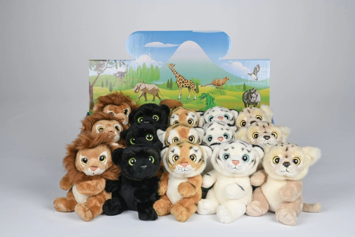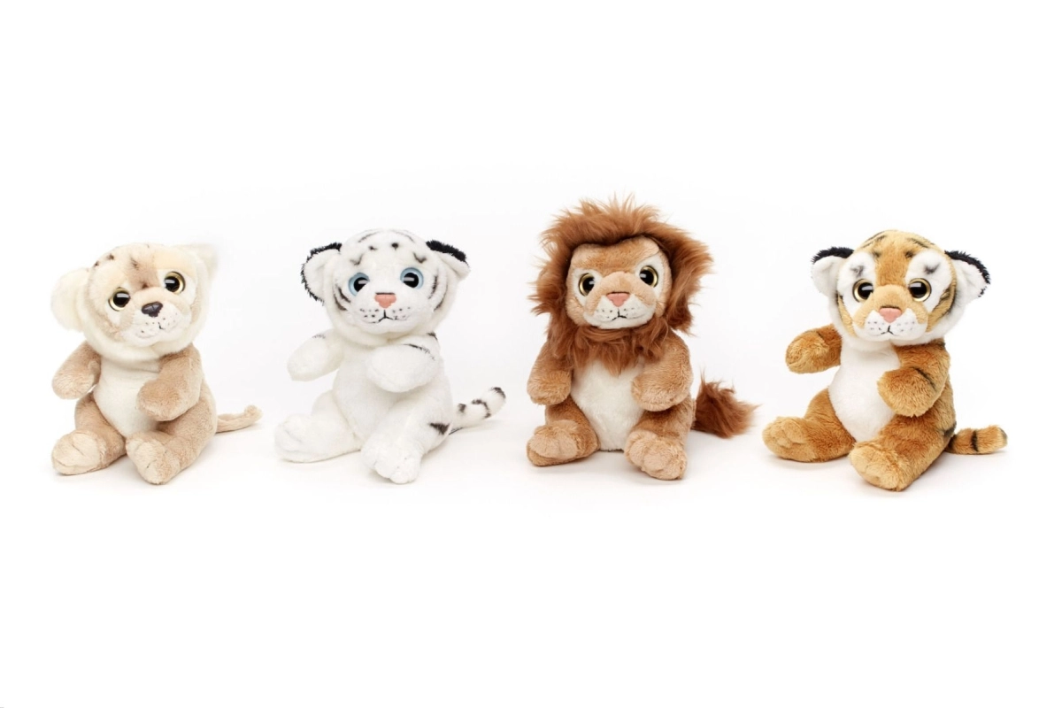 Oplev kollektionen af plyssede rovdyr i kompakt 15 cm størrelse – lille løve, tiger, hvid tiger eller en sød killing. Hver figur er lavet af blød, behagelig plys og pyntet med præcis stikning for sikker og langvarig brug. Takket være den lette fyldning er den dejlig at kramme og giver børn en beroligende følelse af tryghed.