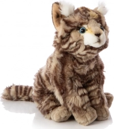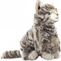 Denne plyskat har realistiske mønstre og farvenuancer, der giver den et autentisk udseende som en ægte kat.