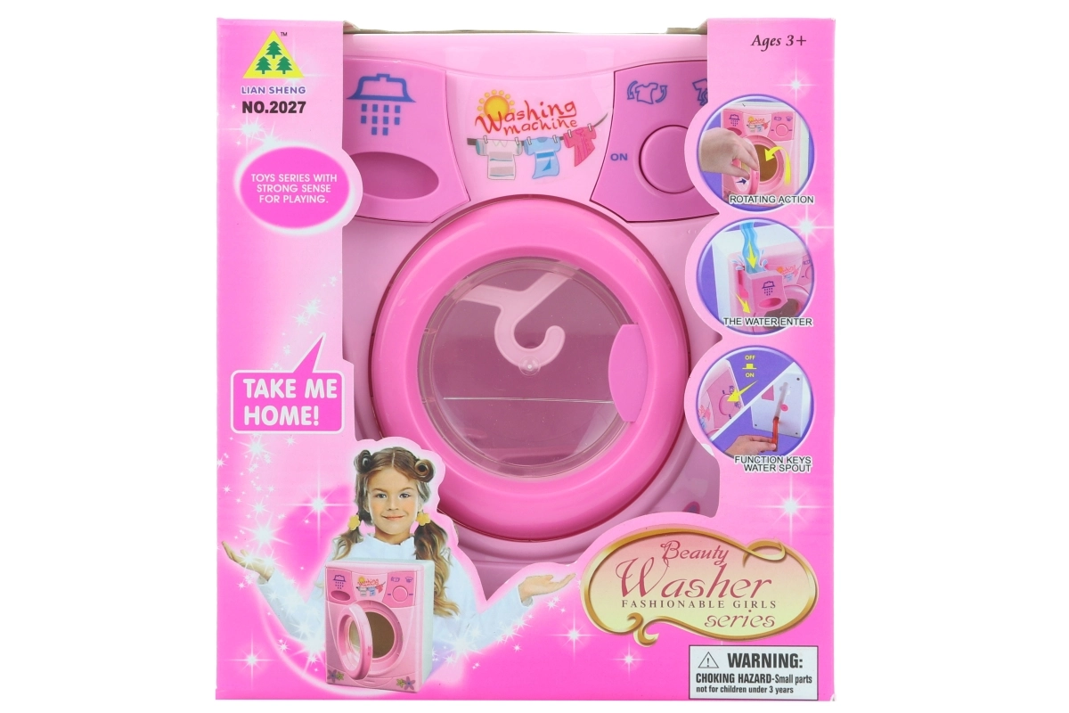 Denne batteridrevne børnevaskemaskine med vand vil glæde ethvert barn, der elsker at efterligne voksne. Muligheden for at bruge vand gør legen realistisk, og det at lære husholdningsaktiviteter bliver sjovt og sikkert. Det kompakte design passer nemt ind på børneværelset, og det lyserøde look bliver hurtigt et hit.