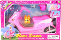 Forlygterne på scooteren tændes, når du drejer nøglen, hvilket giver en autentisk oplevelse. Gør dig klar til eventyr med dukkerne takket være den bageste bagagebærer med åbent låg til opbevaring af småting. Sættet inkluderer også stilfulde briller, en hjelm og to plastflasker, så dine dukker altid er klar til turen.