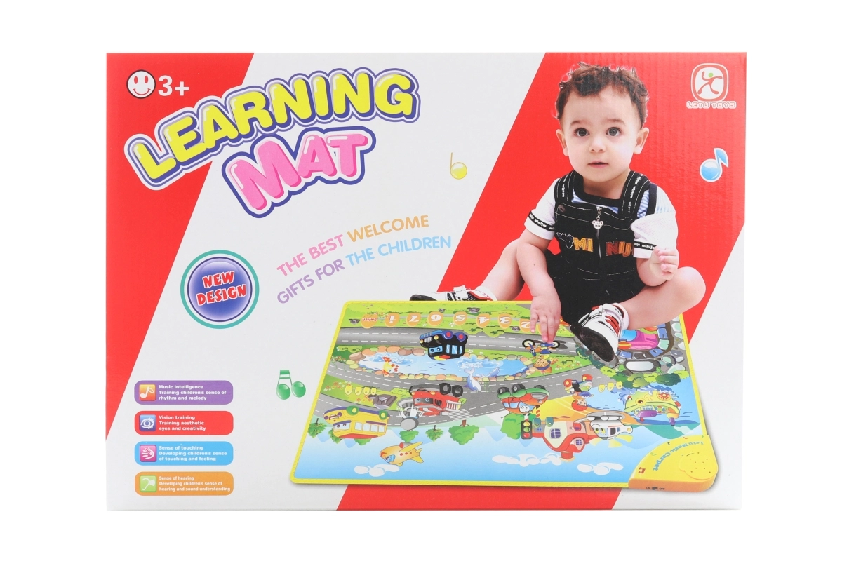Udforsk veje og jernbaner med dette farverige musiktæppe, som ved tryk på udvalgte steder afspiller realistiske lyde af transportmidler. Børn lærer på en sjov måde at genkende lyde, træner øje–hånd-koordination og udvikler deres forestillingsevne.