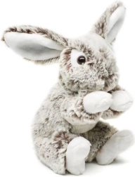 Denne grå plyskanin imponerer med sin bløde pels, hvide detaljer på poter og ører samt et venligt udtryk. Den siddende udformning gør kaninen til et sødt tilbehør på børneværelset og en skøn rejseledsager.