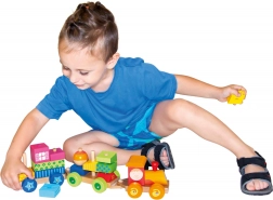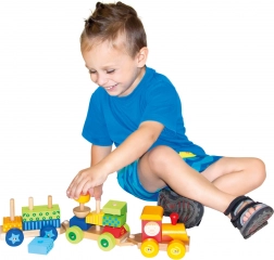 Dette multifunktionelle træ togbane er ikke kun et træk-legetøj, men også et byggesæt, der giver børn mulighed for at udvikle deres kreativitet. Togbanen inkluderer tre undervogne og 18 forskellige klodser, der kan sammensættes efter fantasien.