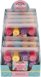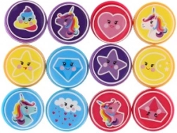 Hvert sæt indeholder 12 forskellige stempler med enhjørninger, stjerner, hjerter og skyer. Børn kan nemt blande og kombinere aftryk, når de laver kort eller pynter notesbøger.