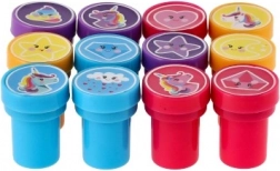 Sættet byder på en farverig palet af søde motiver (enhjørninger, stjerner, hjerter, skyer m.m.) i 4 glade farver. Stemplerne har en kompakt størrelse på 3 cm, ligger godt i den lille børnehånd og udvikler både finmotorik og fantasi.