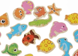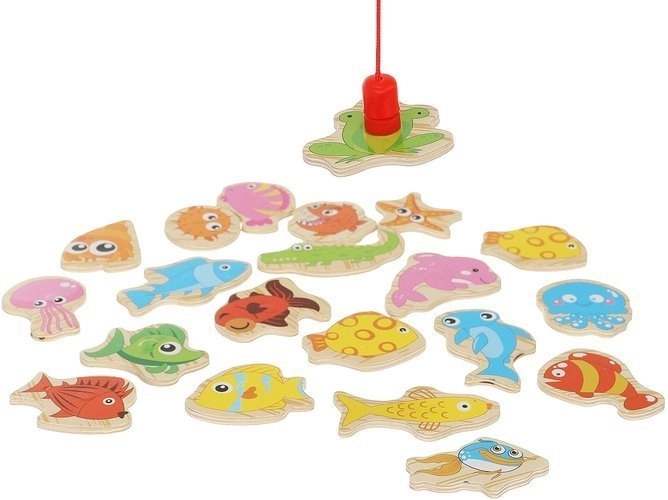 Dette træmagnetiske spil er et fremragende valg til hyggelig familieleg. Børn fanger søde havdyr med magnetiske fiskestænger, mens de træner øje-hånd-koordination, tålmodighed og præcision. Takket være de livlige farver og det venlige design vækker legen nysgerrighed og lærer børn om livet i vandet.