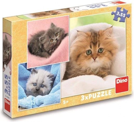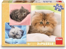 Tre puslespil med motiv af søde killinger vil glæde små puslespilsentusiaster: hvert har 55 brikker, det færdige billede måler 18×18 cm, og lægningen udvikler finmotorik, koncentration og fantasi. Fremstillet af holdbar og sundhedsvenlig pap i Tjekkiet.