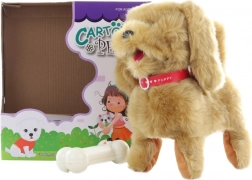 Den interaktive brune hundehvalp med ledning er en ideel ledsager for små dyreelskere. Fjernbetjeningen med tre knapper giver intuitiv leg – hunden bevæger sig frem, tilbage og kan også gø. Takket være den robuste udførelse er den perfekt til daglig børneleg.