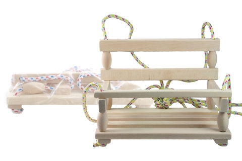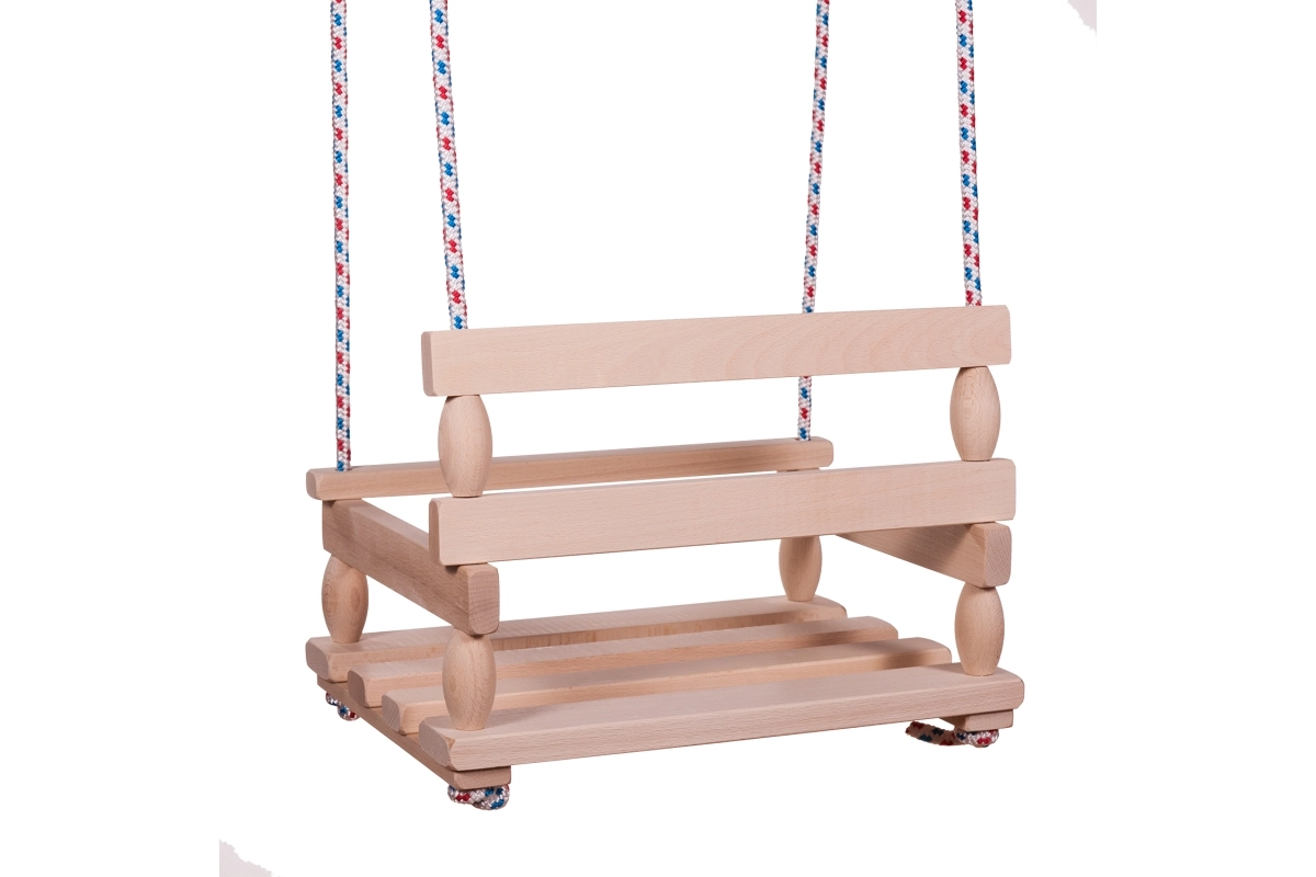 Den holdbare trækonstruktion med glat overflade sikrer lang levetid og behagelig siddekomfort ved hver gyngetur.
