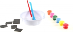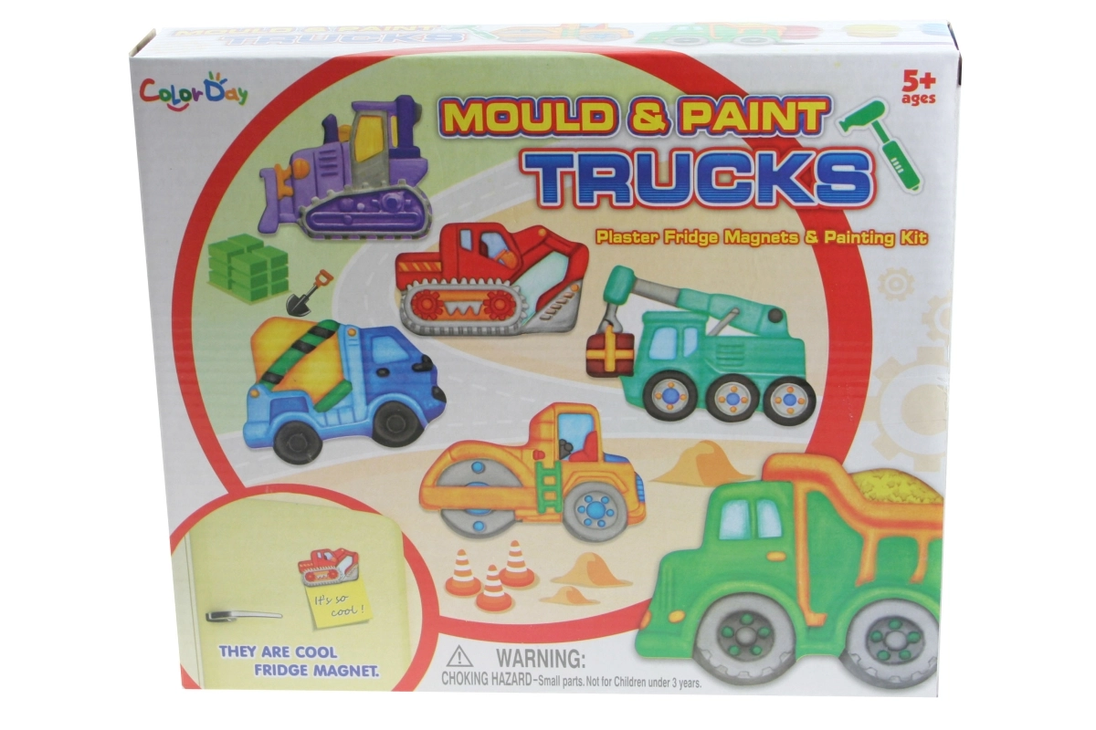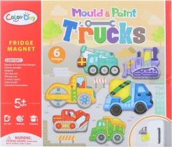 Forvandl skabelsen til et byggeeventyr. Med dette sæt støber børn gipsmagneter i en form med 6 motiver af byggemaskiner, farvelægger dem med de medfølgende farver og skaber med hjælp fra magneterne festlige dekorationer til køleskabet eller en magnettavle.