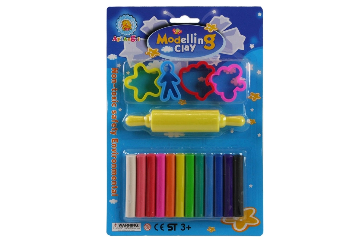 Modeleringssættet indeholder 12 farver modellervoks, en kagerulle på ca. 13 cm og 4 forme. Pakningens mål er ca. 17 cm x 25 cm. Alder 3+