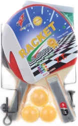 Bordtennissæt med net indeholder 2 bat, 3 bolde og et net. Produktet er ikke legetøj; det er beregnet til sportslige formål.