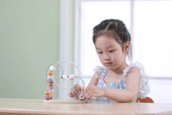 Perlelabyrinten hjælper med at forbedre hånd-øje-koordination og finmotorik, når børn flytter perlerne langs de trådede spor.