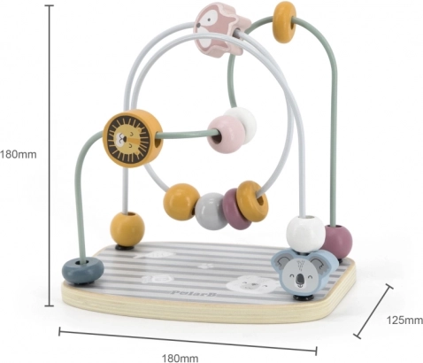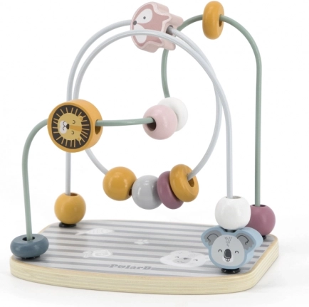 Opdag den træbaserede perlelabyrint, som motiverer til udvikling af finmotorik og giver en lærerig oplevelse for små børn. Dette kvalitetslegetøj er lavet af naturligt træ og bruger sikre farver, hvilket sikrer sikkerhed og et flot udtryk. Med farverige perler og dyreformer på snoede trådbaner styrker børn deres koordination og finmotorik.