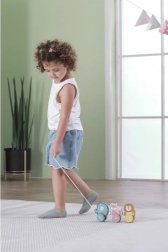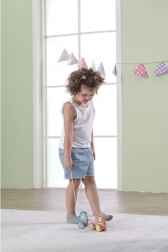 Legetøjet er fremstillet af holdbart, lakeret træ og malet med ugiftige farver, der er sikre for børn. Glatte kanter og en behagelig størrelse er ideelle til små børnehænder. Ved både fælles og selvstændig leg træner børn kreativitet, finmotorik og fantasi.
