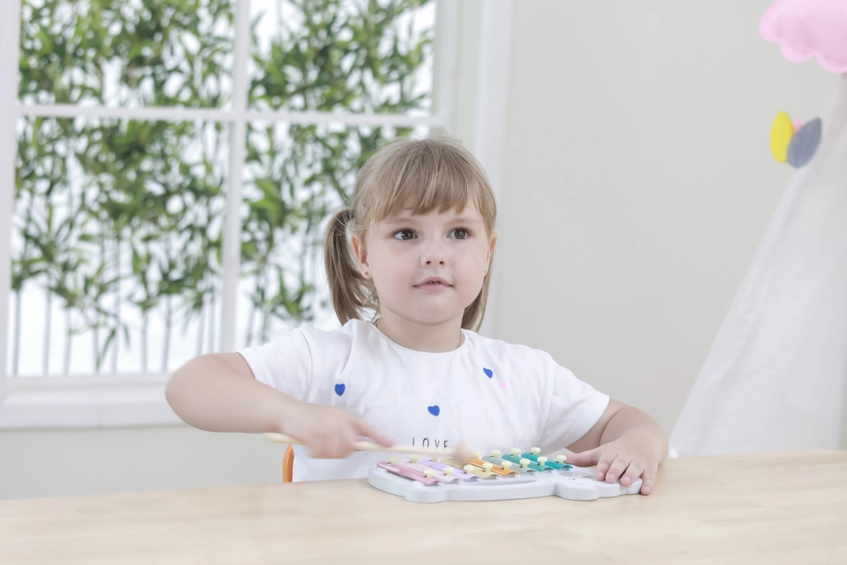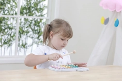 Den robuste konstruktion, afrundede kanter og kompakte mål sikrer sikker og komfortabel leg – også for de mindste. Xylofonen er et fremragende valg til at udvikle musikalsk sans, koncentration og tålmodighed.