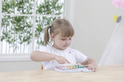 Otte pastelfarvede tangenter motiverer børn til at udforske toner, rytmer og enkle melodier. Perfekt til at udvikle hørelse og kreativitet.