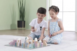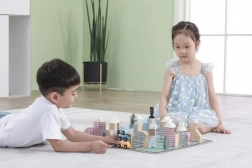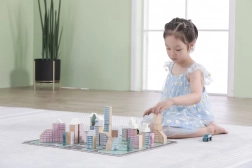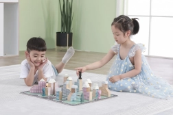 Kvalitetsklodser i træ med omhyggelig finish ligger godt i hånden og indbyder til kreativ leg, hvor børnene udvikler både rumlig forståelse og motorik.