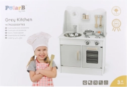 Legekøkkenet POLARB Eco Grey er en gennemtænkt legetøjsløsning for små kokke, som kombinerer sjov og udvikling af færdigheder. Den robuste trækonstruktion med giftfrie farver i “polare” nuancer virker elegant og tåler daglig leg. Børn kan prøve at tilberede mad på kogepladen, bage i ovnen og vaske op i vasken – præcis som de voksne.