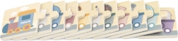 Hver vogn i toget bærer et tal og et dyr, som børn nemt kan matche og dermed øve både tælling og genkendelse.