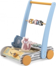Det søde trægangstativ til de første skridt tilbyder stabil støtte, bevægelse frem og tilbage og masser af sansemæssig underholdning. Takket være de gyngende dyr (ræv og elefant), som laver lyd, når man skubber, understøtter det motorik, balance og genkendelse af farver og dyr. Ideelt til børn fra 18 måneder.