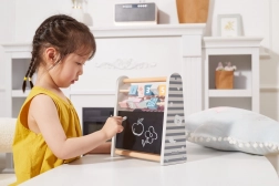 Inkluderer en lille tavle og støvfrit kridt til at skrive tal, de første regnestykker og egne tegninger – ideel til at udvikle kreativitet.