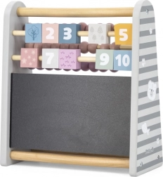 Dette multifunktionelle 3-i-1 trætæller forener læring og leg. Med farvede perler øver børn sig i at tælle, med vendbare klodser med tal lærer de at genkende cifre og enkle sammenhænge, og på kridttavlen kan de skrive eller tegne deres første regnestykker og billeder.