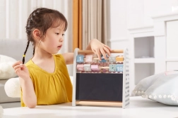 Farvede perler og vendbare klodser med tal motiverer børn til at udforske matematikkens grundprincipper på en naturlig og sjov måde.