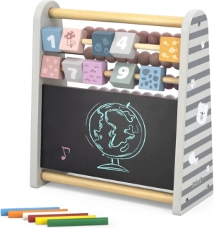Opdag et smart legetøj til den første matematik: et 3-i-1 trætæller med farvede perler, vendbare klodser med tal og en lille kridttavle. Det udvikler tællefærdigheder, tallgenkendelse og kreativitet ved tegning. Den kompakte bordstørrelse, den stabile træ-konstruktion og de attraktive pastelfarver gør dette redskab til et ideelt valg for børn fra 3 år.