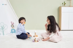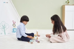 Leg med tesalon udvikler kommunikation, fantasi og samarbejde mellem børn. De farverige kager indbyder til sortering og tælling, mens kopper og skeer understøtter øje–hånd-koordination og finmotorik. Det elegante design i blide farver passer pænt ind på ethvert børneværelse.