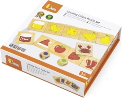 Et træbaseret læringsspil, hvor børn lærer at skelne mellem farver og matche dem korrekt med billeder. Børnene lærer ikke kun farverne at kende, men får også kendskab til genstande, planter eller dyr forbundet med disse farver, hvilket styrker deres viden om verden omkring dem.