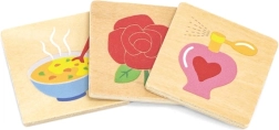 VIGA uddannelsesspil træpuslespil tilbyder en ideel måde for børn at udvikle deres tænkning og koordination. Målet er at matche genstande med valgte sanser, som inkluderer forskellige hverdagsobjekter.