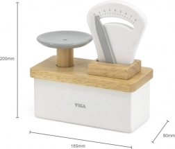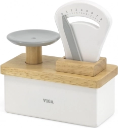 Trælegetøjsvægten Viga giver børn mulighed for at lege købmand, veje frugt og grøntsager, hvilket hjælper med at udvikle motoriske færdigheder og øje-hånd-koordination. Denne farverige vægt udvikler fantasi og hjælper med at forstå grundlæggende matematik og pengeværdi. Den fremragende trærelation sikrer legetøjets lange levetid, materialer og farver er miljøvenlige og sikre.