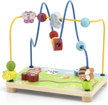 Oplev sjov med trælabyrinten - Gård, hvor farverige perler kan skubbes langs bøjede metaltråde. Børn vil elske dette legetøj takket være dets interaktive design, som stimulerer sanserne og understøtter kreativiteten.