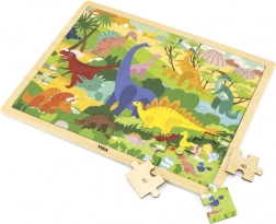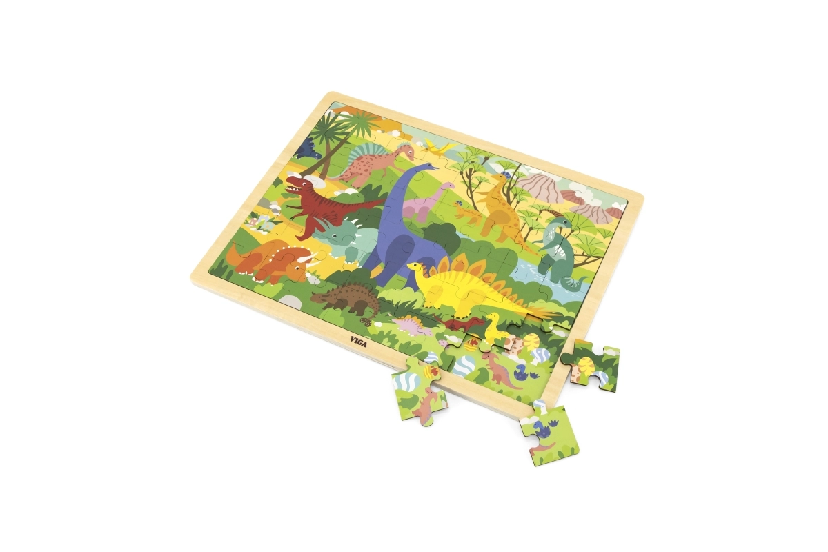 Giv børnene sjov og lærerig leg med et træpuslespil med dinosaurmotiv. Med 48 brikker er det ideelt som det første “større” puslespil, der gradvist styrker færdigheder og selvtillid hos små byggere. Brikkerne er solide, ligger godt i hånden og kan nemt placeres på træpladen med ramme.