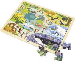 Dette søde træpuslespil med dyremotiver fra zoologisk have vil glæde alle små puslespilsentusiaster. De kvalitetsrige træbrikker ligger godt i hånden og sikrer lang holdbarhed, selv ved hyppig brug. Når puslespillet er samlet, opstår et smukt billede på ca. 40 × 30 cm, som kan lægges igen og igen.